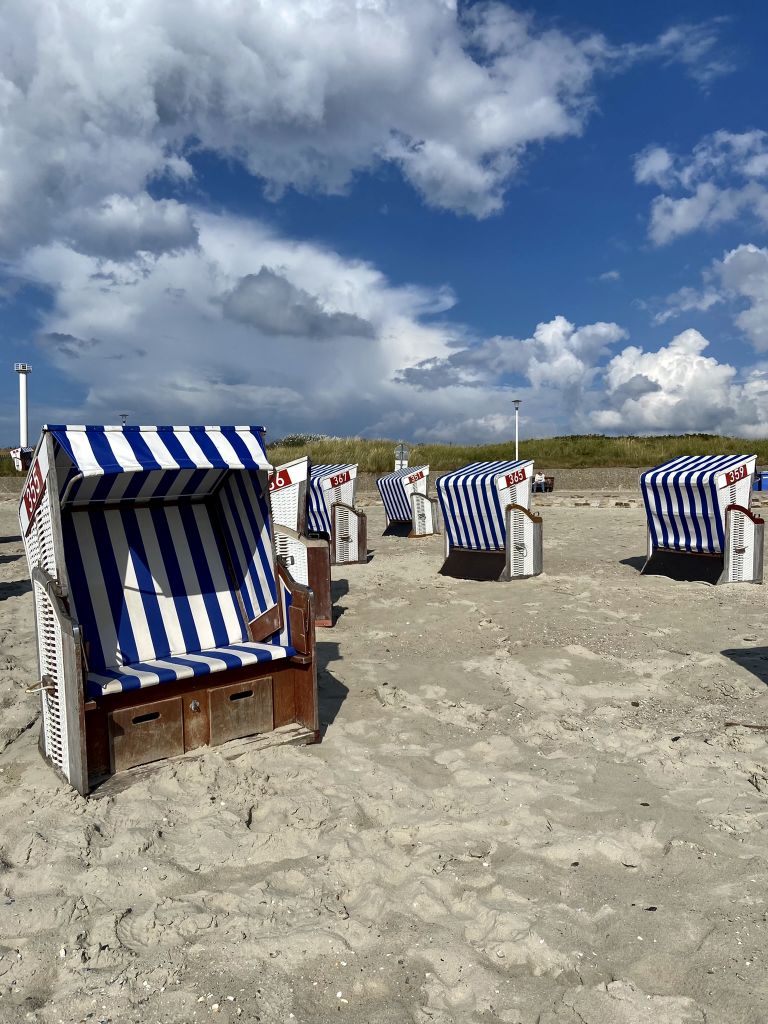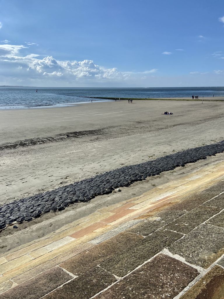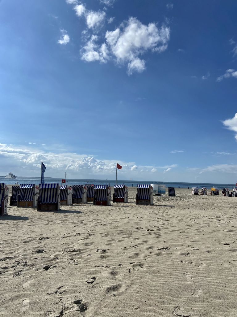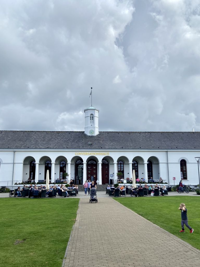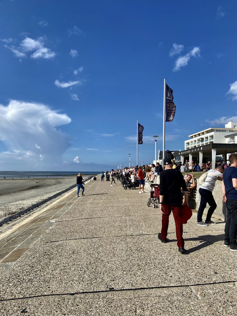 Nach Ankunft im Hafen von Norderney gings direkt zum Weststrand. Nach einem kurzen Marsch entlang der Strandkörbe nahe dem Meer gelangt man zu dem Teil der Insel, wo es zahlreiche gemütliche Cafes mit Außenbewirtung und kleine lokale Geschäfte gibt.