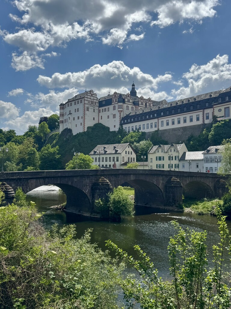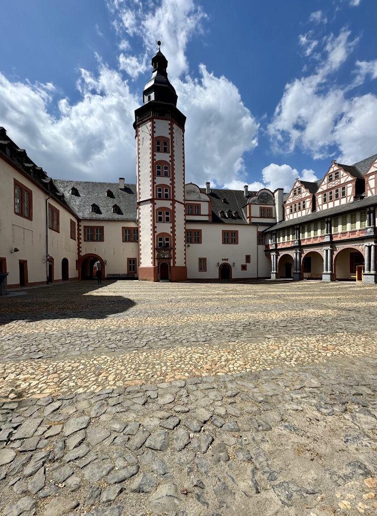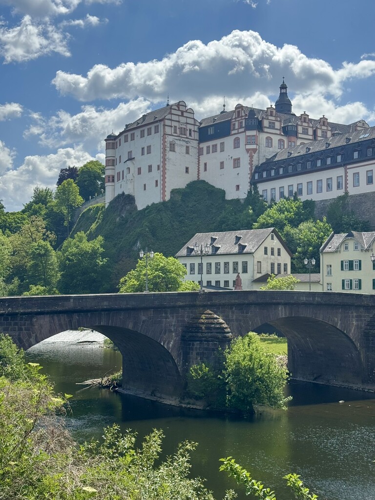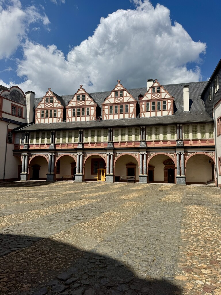 Weilburg liegt an der Lahn zwischen dem Taunus und dem Westerwald erhaben auf einem Berg Die Lahnschleife umfasst fast 80% von Schloss und Altstadt. So kann man an der Lahn entlang fast die ganze Anlage umrunden und hat interessante Ansichten. Weilburg ist auch verkehrstechnisch interessant, denn keine andere Stadt hat einen Auto-, Eisenbahn- und einen Schiffstunnel.